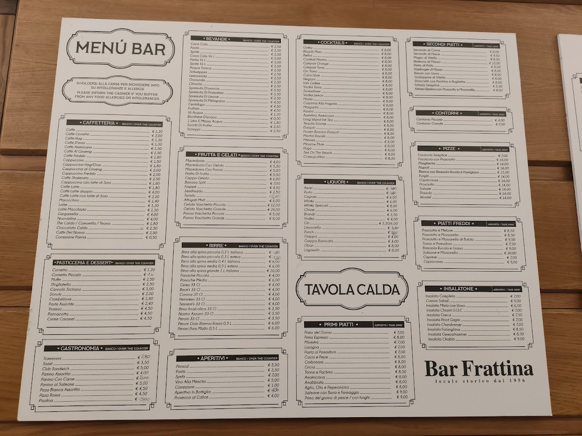 Welcome to Bar Frattina, a charming eatery located in the heart of Rome at Via Frattina, 142. Renowned for its vibrant atmosphere, this spot is a must-visit for both locals and tourists alike. The menu offers a delightful range of authentic Italian dishes and beverages, making it perfect for a meal or a quick snack.