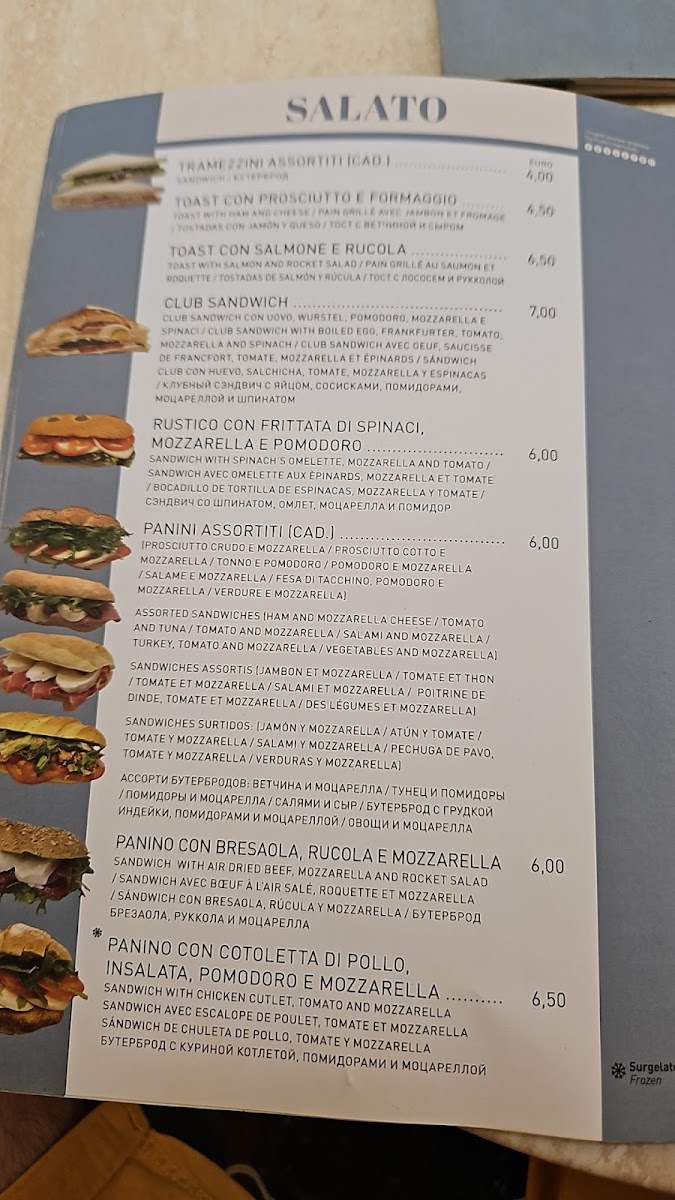 Customer reviews highlight the irresistible ice cream and aromatic coffee, with one guest praising the “Italian cream caffè” for its rich flavor. The sandwiches, particularly recommended by the attentive staff, are a culinary treat that you won't want to miss. Whether you're unwinding with a tiramisu or enjoying a casual bite of focaccia, Bar Frattina's quick service and lively vibe ensure a memorable dining experience.